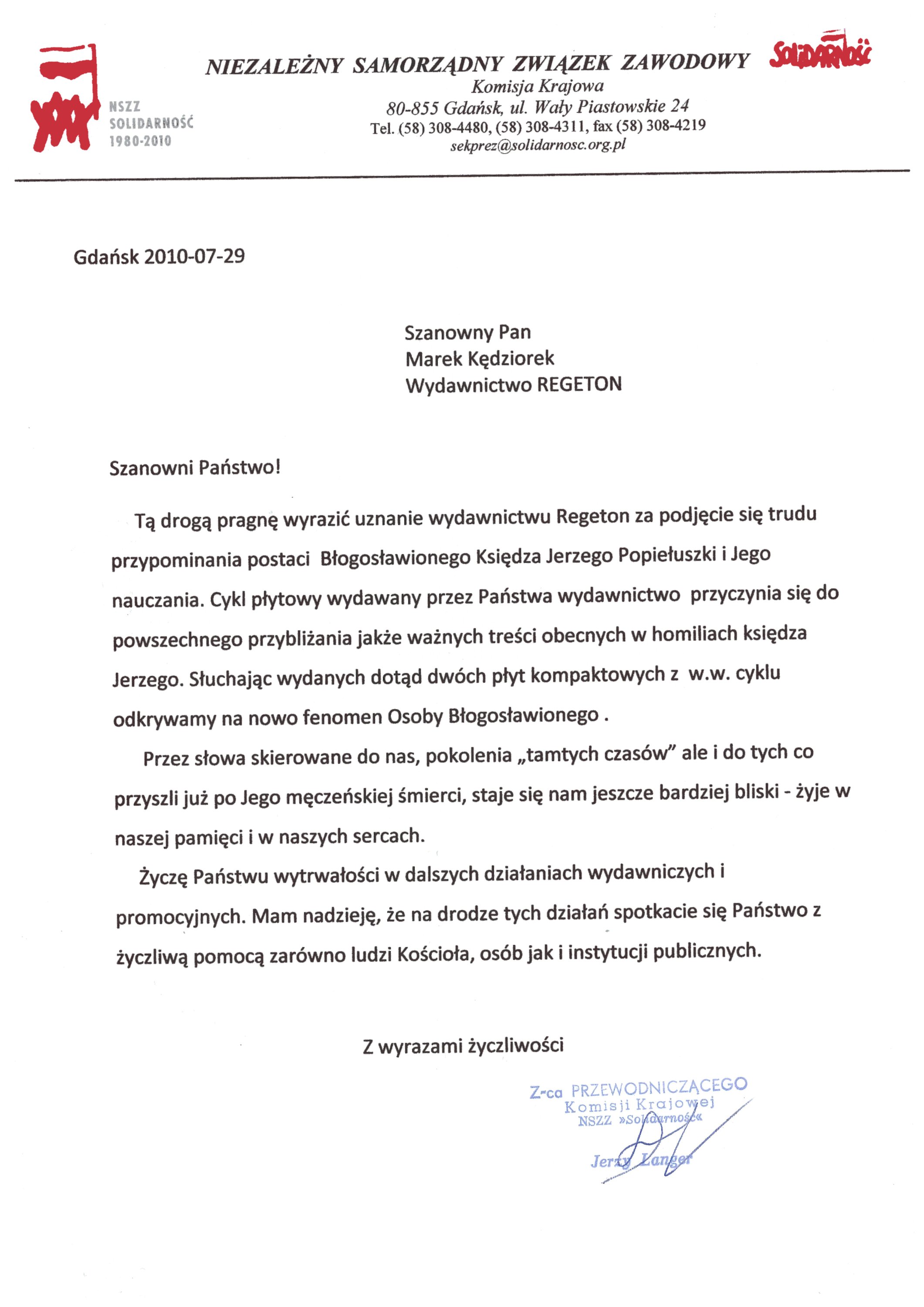 Poniżej przedstawiamy listy wspierające naszą inicjatywę udostępnienia kazań w formie publikacji płytowej.